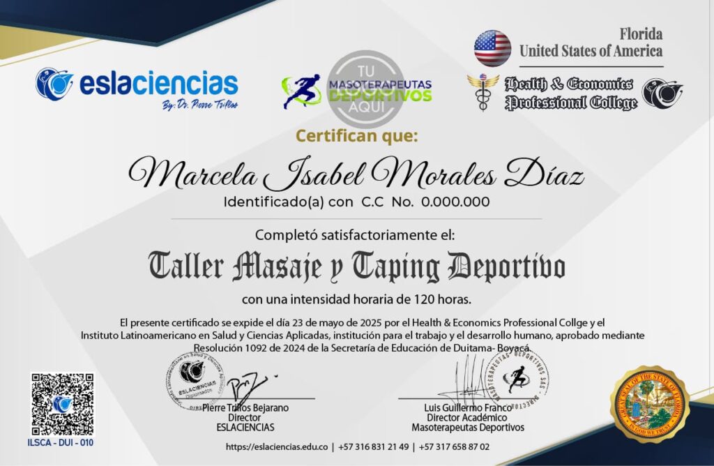 Programa avalado por Health & Economics Professional College de Florida, apostillado en convenio con eslaciencias, instituciones reconocidas que validan tu experiencia a nivel internacional.